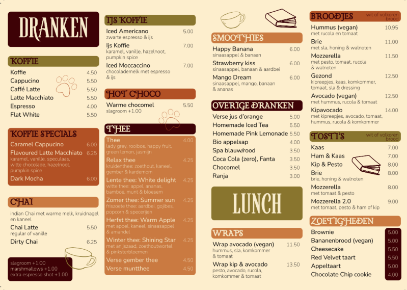 Tip van de huiskat: Al onze dranken zijn ook te bestellen met plantaardige melk. Heb je een allergie? Geef het gerust aan bij onze medewerkers, we denken graag met je mee!